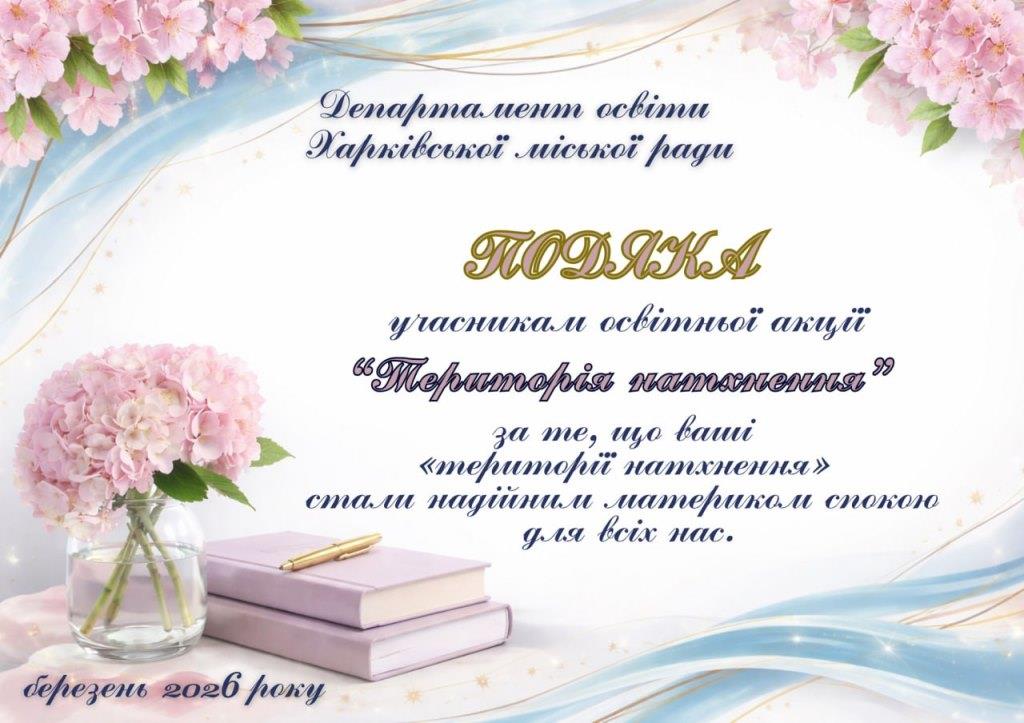 Дякуємо учасникам освітньої акції «Територія натхнення»Опублікував admin. Дата публікації 23/03/2026Теги: Загальні