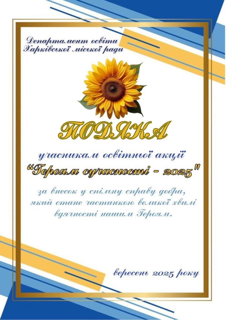 Департамент освіти Харківської міської ради висловлює щиру подяку всім учасникам освітньої акції «Героям сучасності»!