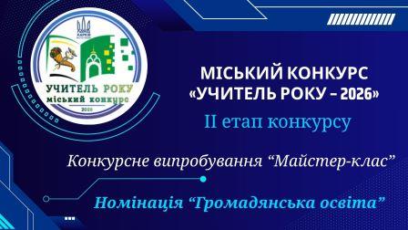 26 листопада відбулося конкурсне випробування «Майстер-клас» у номінації «Громадянська освіта» ІІ етапу міського конкурсу «Учитель року – 2026».