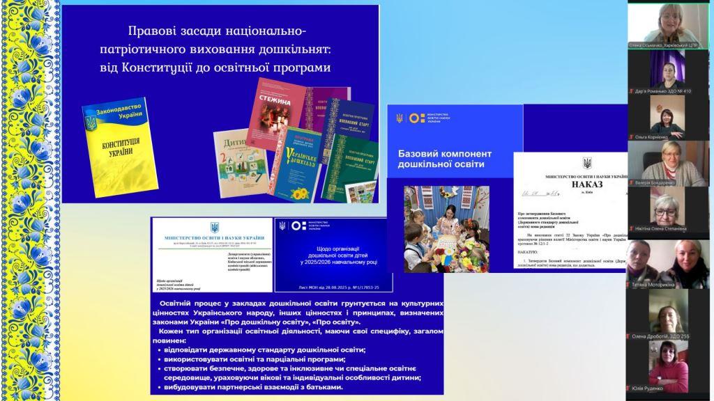 05 листопада 2025 року проведено вебінар за темою «Національно-патріотичне виховання дітей дошкільного віку», що зібрав понад 120 педагогічних працівників закладів дошкільної освіти та представників відділів освітнього менеджменту.
