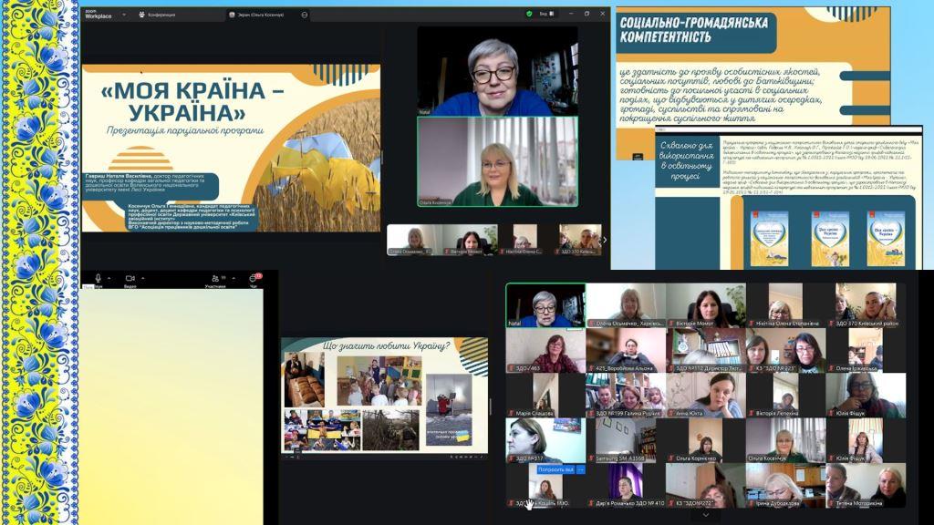 Особливий інтерес викликав виступ авторок навчально-методичних посібників, професора Наталії Гавриш (Волинський національний університет імені Лесі Українки) та доцента Ольги Косенчук (державний університет «Київський авіаційний інститут»), виконавчої директорки з науково-методичної роботи Всеукраїнської громадської організації «Асоціація працівників дошкільної освіти», які представили парціальну програму «Моя країна – Україна» як інструмент національно-патріотичного виховання дошкільників та особливості її впровадження.