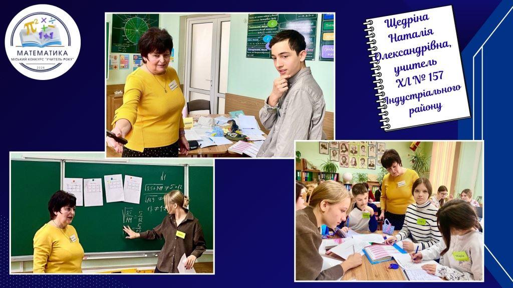 - Щедріна Наталія Олександрівна, учителька ліцею № 157 Індустріального району,