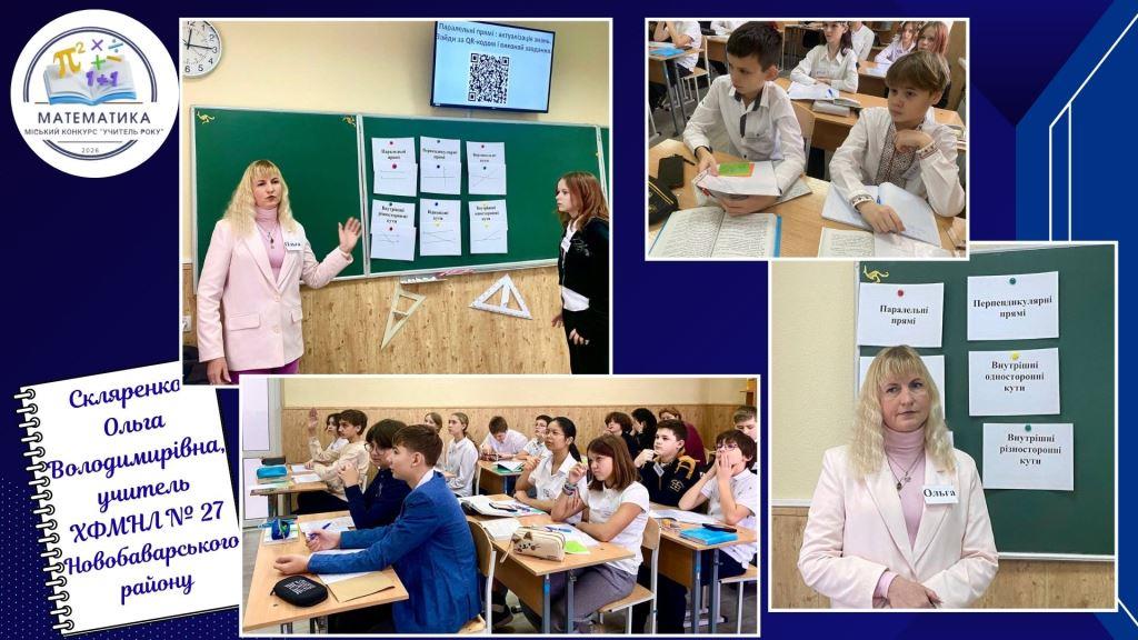 - Скляренко Ольга Володимирівна, учителька фізико-математичного наукового ліцею № 27 Новобаварського району,