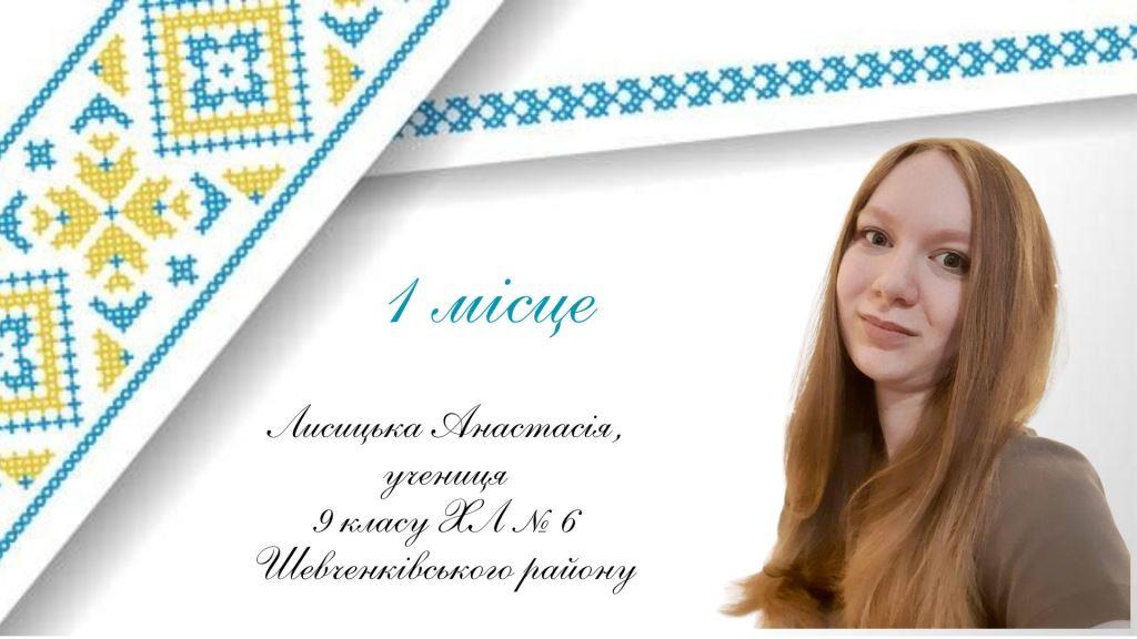 Лисицька Анастасія, учениця 9 класу ХЛ № 6 Шевченківського району;