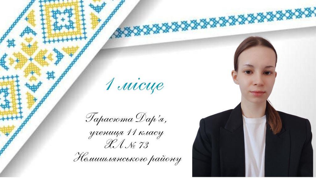 Гарасюта Дар’я, учениця 11 класу ХЛ № 73 Немишлянського району.