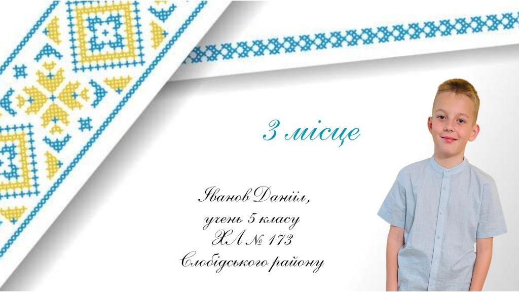 Іванов Даніїл, учень 5 класу ХЛ № 173 Слобідського району;