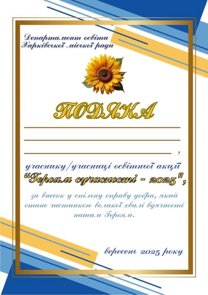 Департамент освіти Харківської міської ради висловлює щиру подяку всім учасникам освітньої акції «Героям сучасності»!