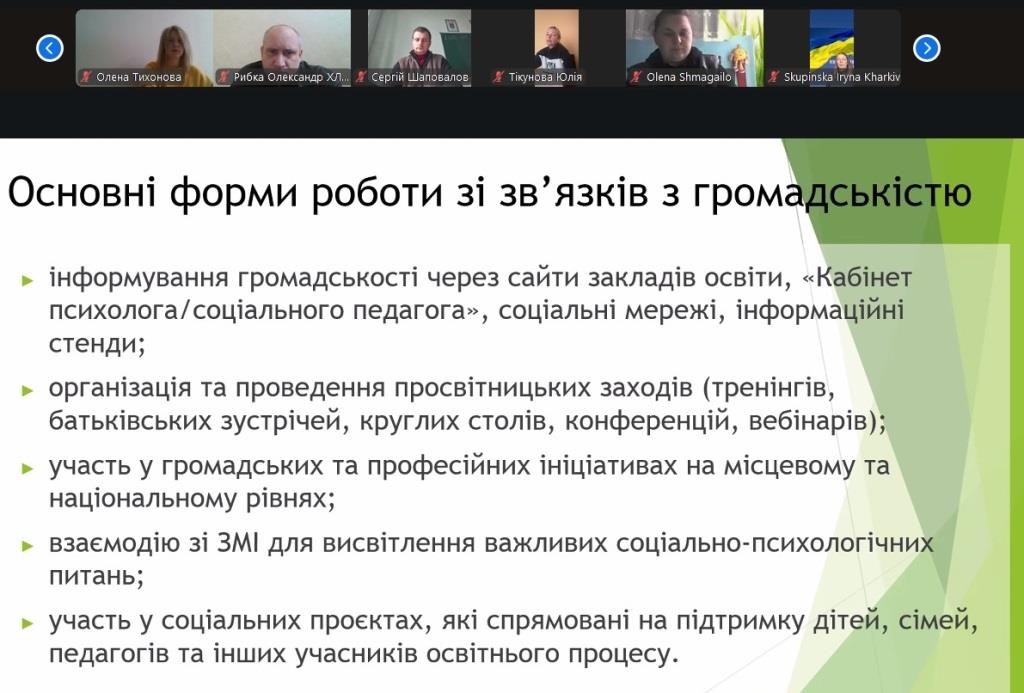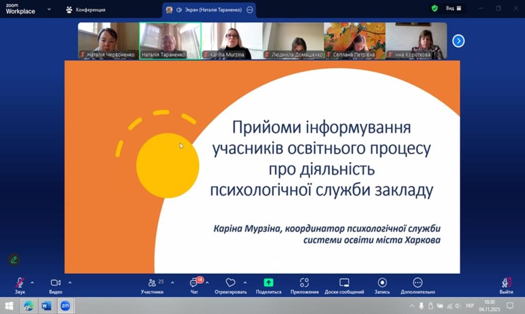 У жовтні 2025 року продовжила роботу Школа молодого фахівця психологічної служби закладів освіти міста Харкова. Для 27 практичних психологів і соціальних педагогів закладів загальної середньої та дошкільної освіти, які працюють перший рік, проведено три  онлайн-засідання.