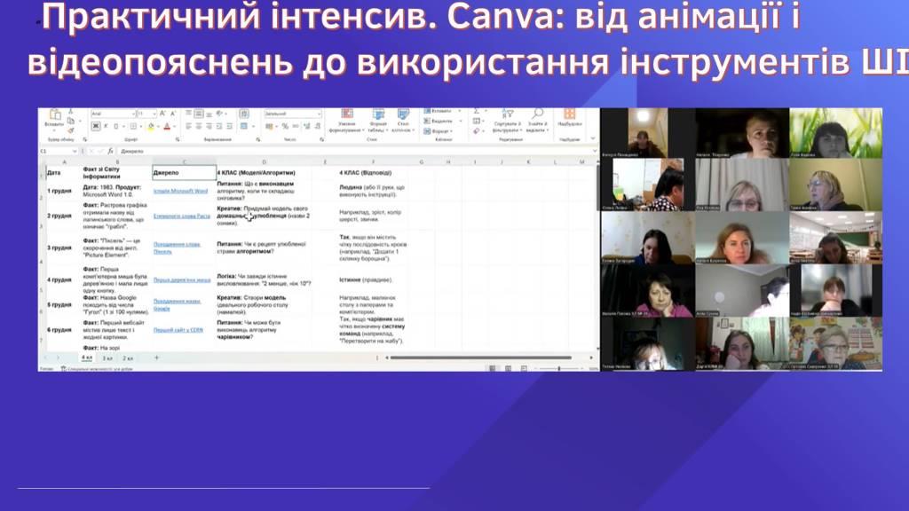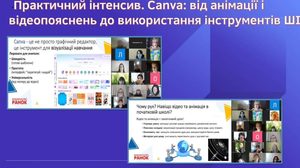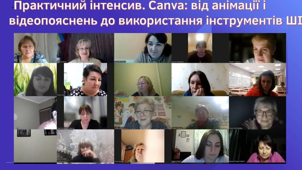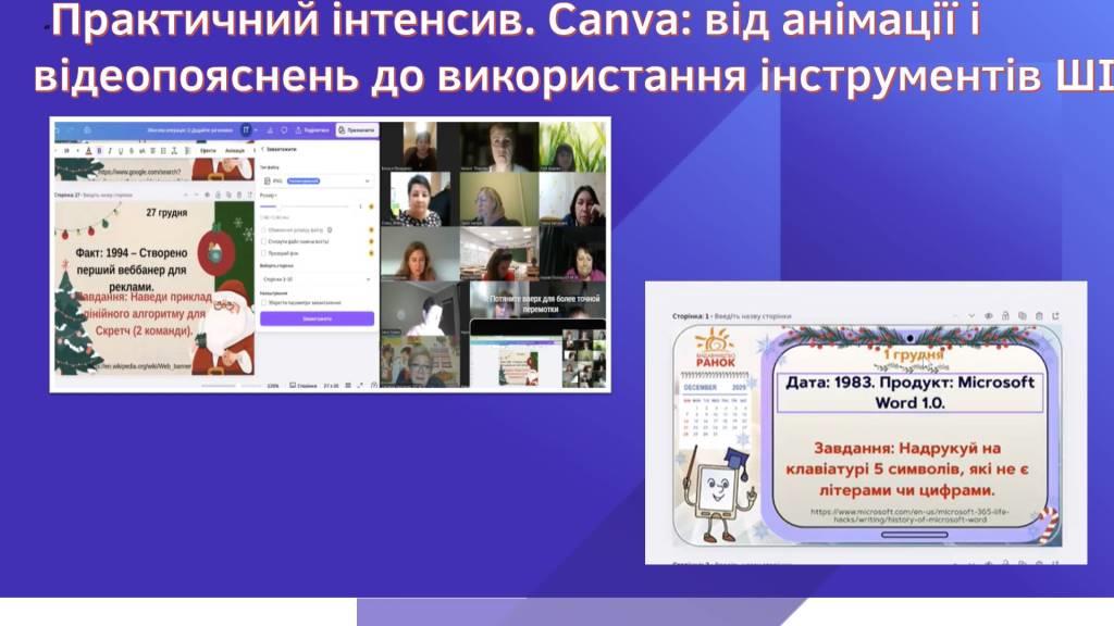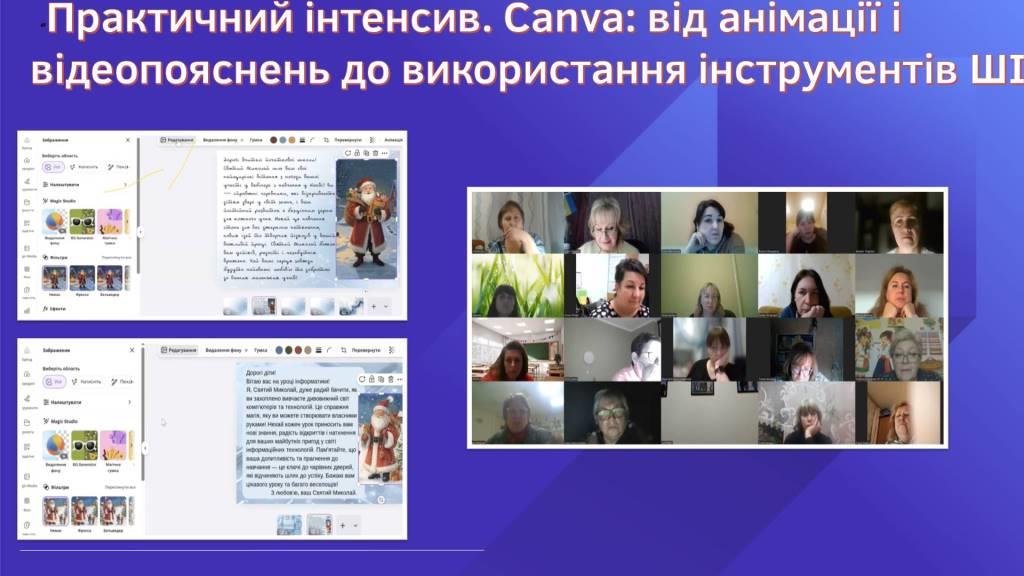 1 грудня 2025 року Харківським центром професійного розвитку педагогічних працівників проведено у форматі відеоконференції майстерку «Практичний інтенсив. Canva: від анімації та відео-пояснень до використання інструментів ШІ».
