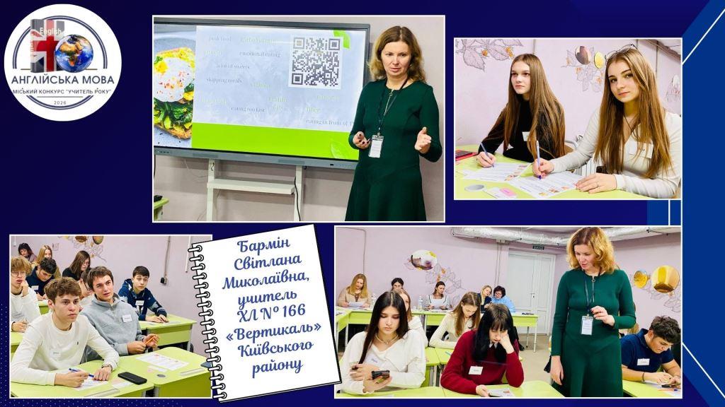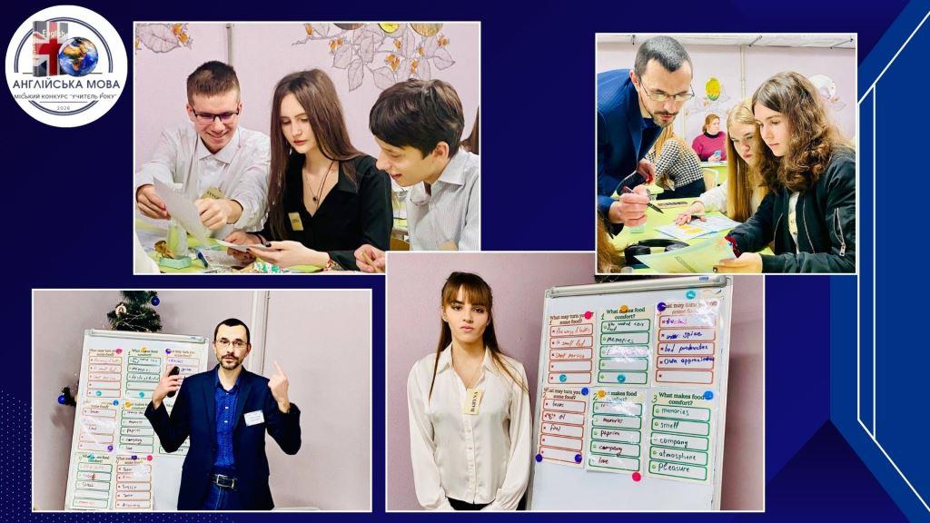 17 грудня чотири фіналісти номінації «Англійська мова» міського конкурсу «Учитель року – 2026» провели конкурсний урок − ключову складову професійних випробувань, де продемонстрували свою фахову компетентність та високий рівень методичної підготовки.