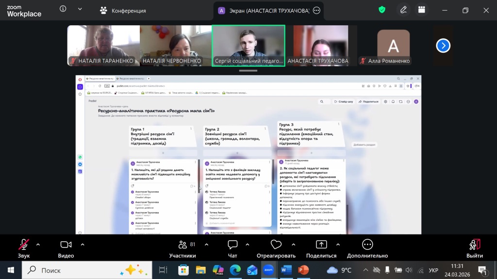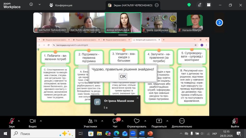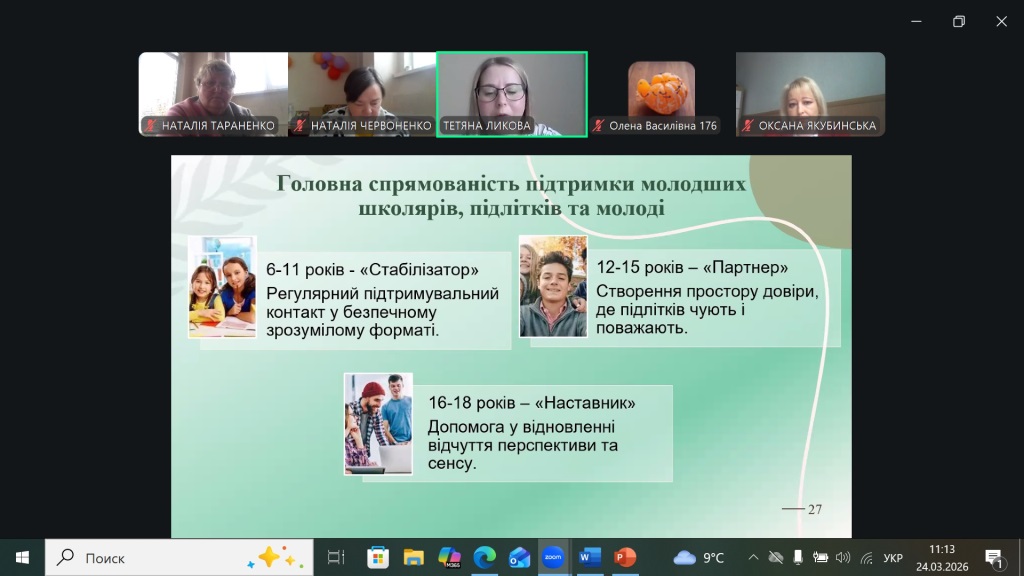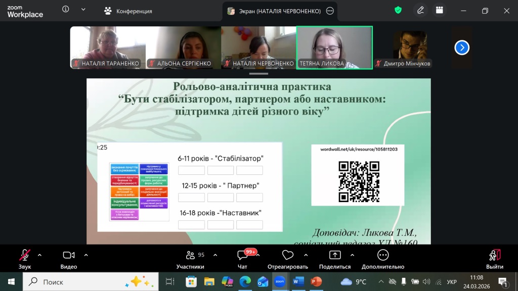 24 березня 2026 року Координаційний центр психологічної служби системи освіти міста Харкова на платформі ZOOM провів панораму методичних знахідок для 100 соціальних педагогів закладів освіти міста.