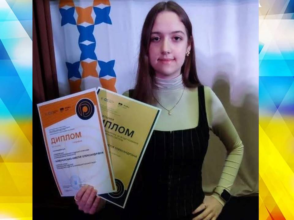 Амелія Гайворонська, учениця 9 класу Харківського ліцею №10 Основ'янського району, стипендіатка Харківського міського голови «Обдарованість» упевнено накопичує результати своїх досягнень стала переможницею олімпіади здобувши І місце та відзначена спеціальним дипломом імені Олексія Івахненка — за глибоке розуміння процесів моделювання та аналізу динамічних систем.