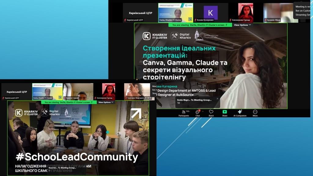 Департаментом освіти Харківської міської ради спільно з Kharkiv IT Cluster проведено практичний інтенсив із секретів візуального сторітелінгу для 190 лідерів учнівського самоврядування з усіх районів міста.