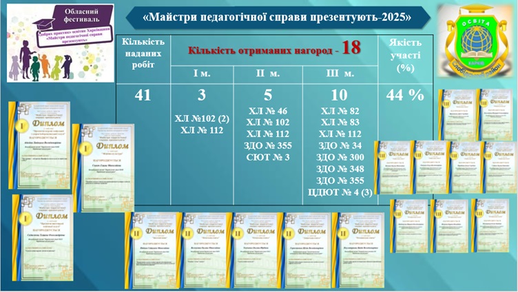 18 переможців обласного фестивалю «добрих практик» освітян Харківщини «Майстри педагогічної справи презентують».