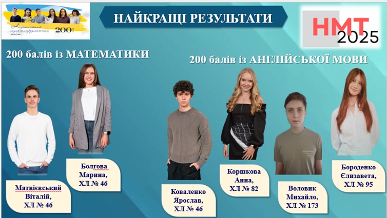 За результатами НМТ 6 учнів склали тест на 200 балів (ліцеї №№ 46 (3), 82, 95, 173).