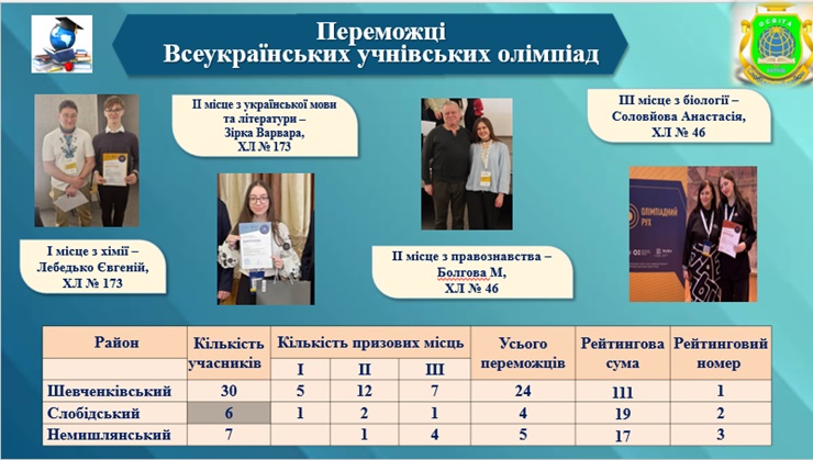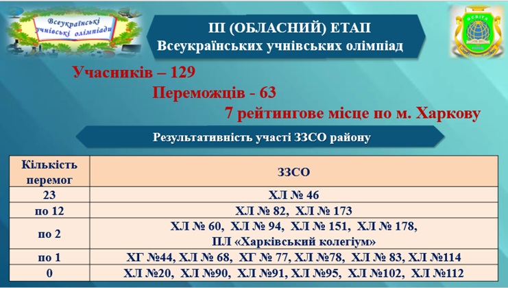 У 2024/2025 навчальному році 63 учні закладів загальної середньої освіти району стали переможцями ІІІ (обласного) етапу Всеукраїнських учнівських олімпіад із навчальних предметів.