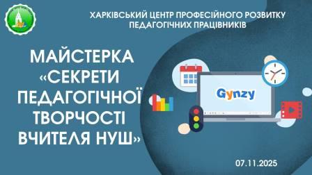 7 листопада 2025 року відбулася онлайн-майстерка «Секрети педагогічної творчості вчителя НУШ» для вчителів початкової школи закладів освіти Харкова, організована Центром професійного розвитку педагогічних працівників міста.